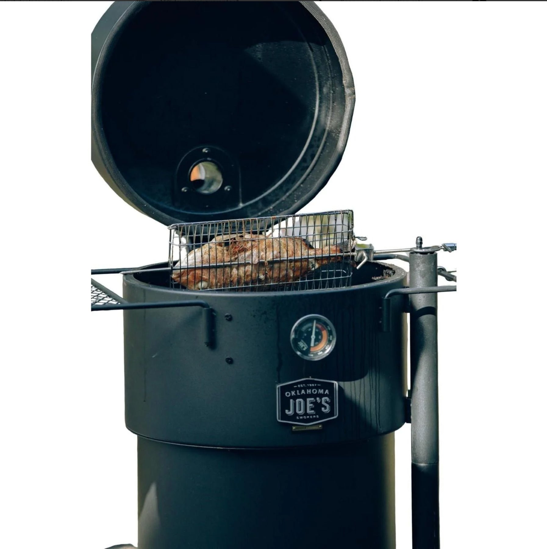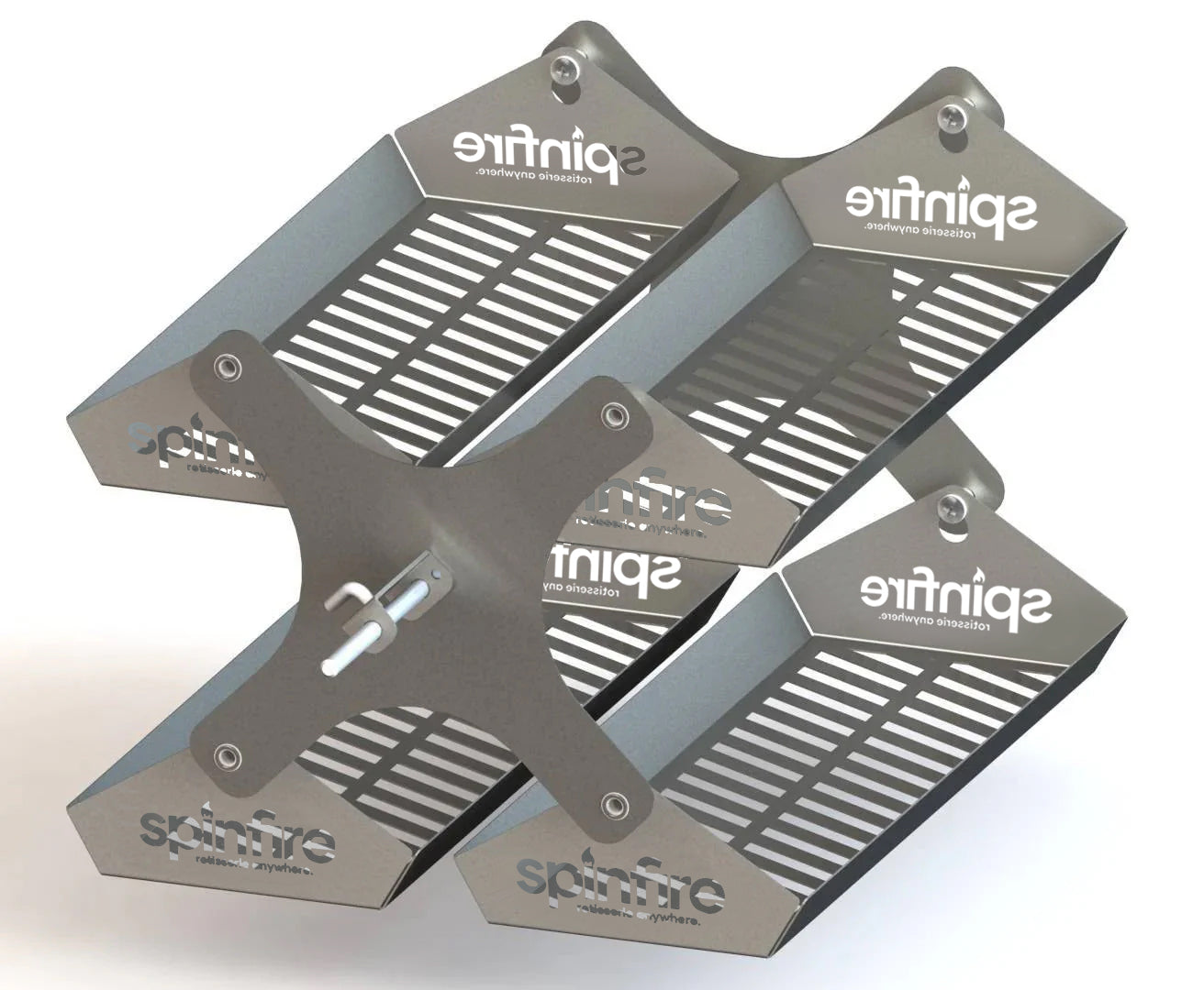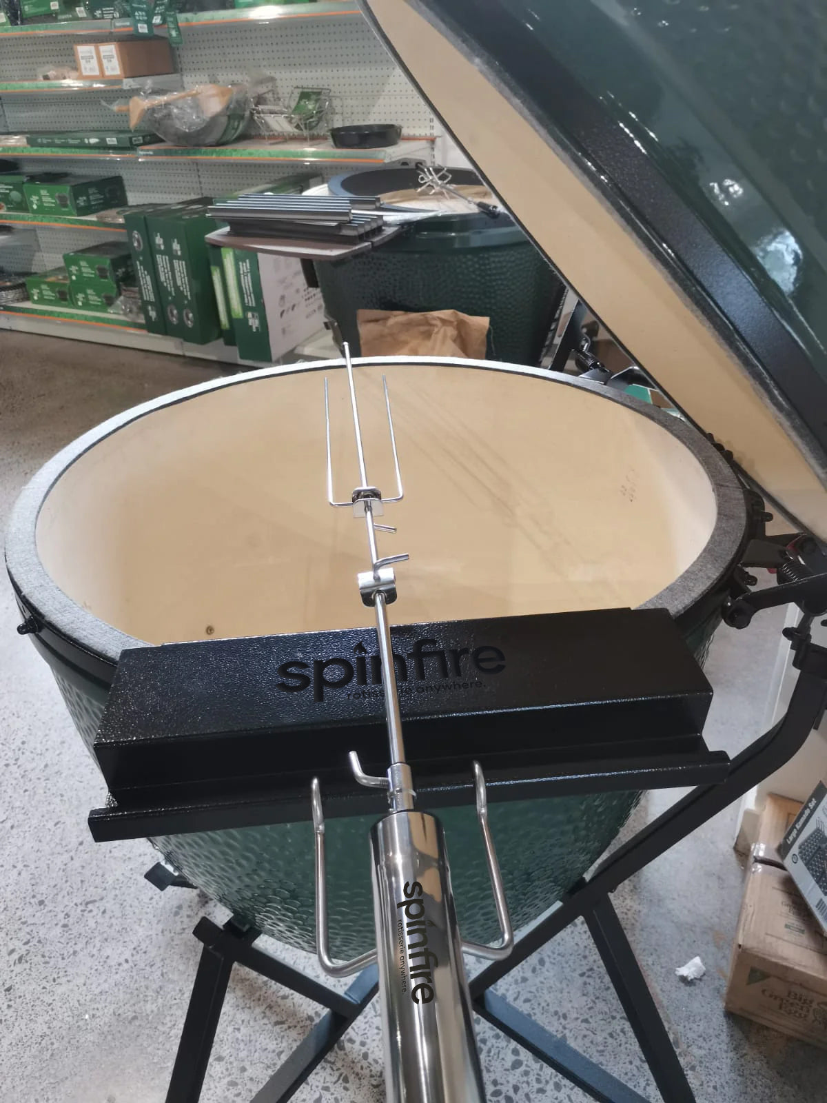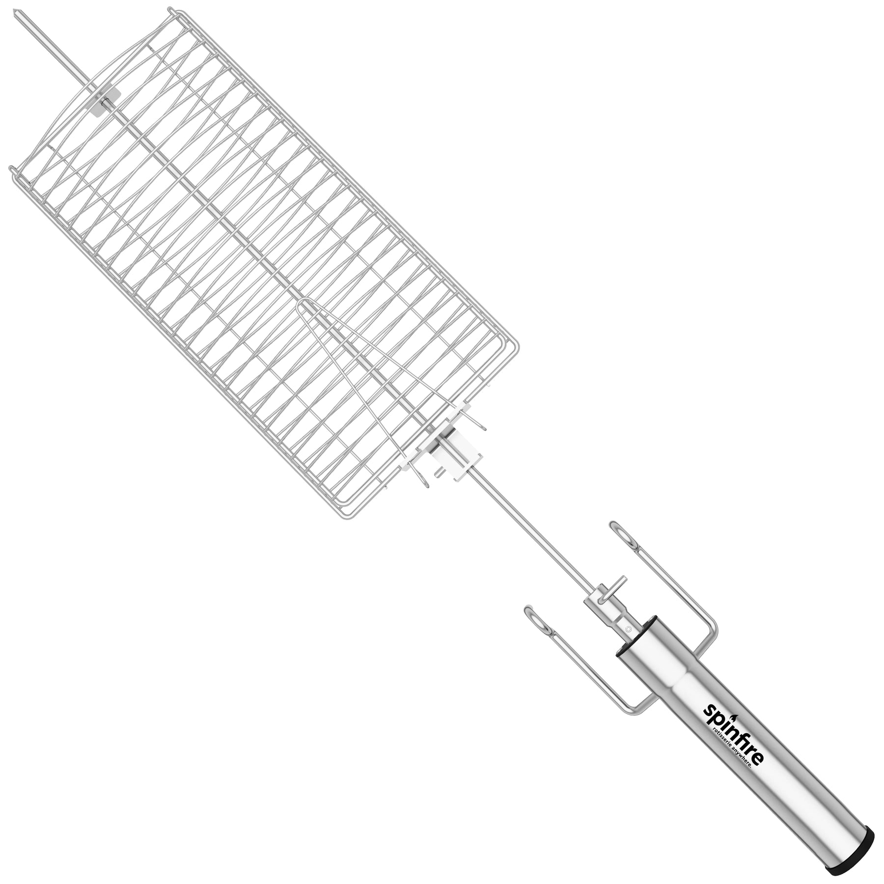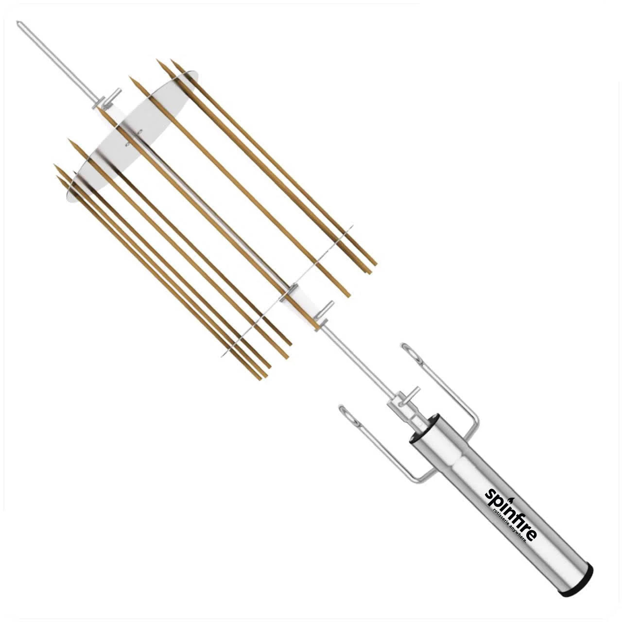 The Spinfire rotisserie is the best new addition to your existing barbecue. Portable & handy for barbecuing on the go, the Spinfire will take you from your home BBQ to your camping grill. The Spinfire can hold up to 5kg of Meat and runs up to 50 hours* with Alkaline batteries, giving you the confidence to rotisserie cook any place, any time. The Spinfire can be adapted to use on many different grills, simply using the extension accessory to adapt its length. Suitable for kettles & drums including Weber, Oklahoma Joe Bronco, Big Green Eggs & Pit Barrels plus many, many more.